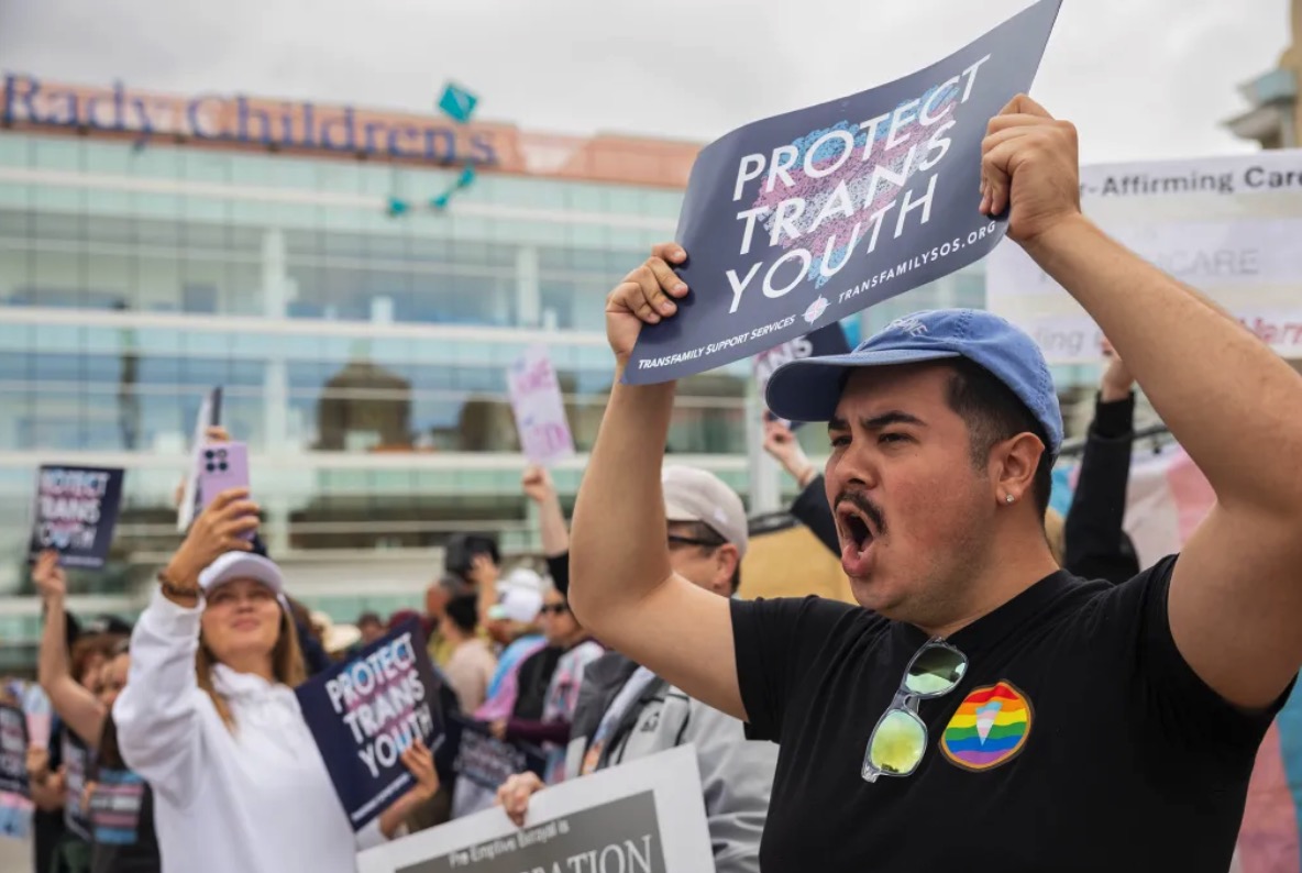 Demonstrators protest against Rady Children's Hospital's decision to end most of its gender-affirming care services in San Diego on Jan. 24, 2026. Photo by Zoë Meyers for The San Diego Union-Tribune