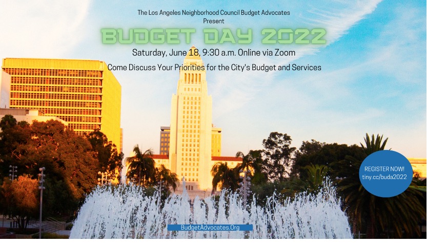 CITY BUDGET - All people residing in or doing business in the City of Los Angeles are invited to the Budget Advocates’ premier event – Budget Day 2022 on Saturday, June 18th.