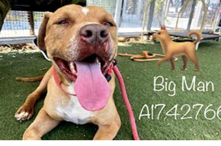 “Nobody is like Big Man. Has been in the shelter since 2017!!! Transferred from South to West LA since they were full and this boy was their shelter favorite! He is a cuddle bud, he is a doll and a greater walking partner. He loooves (sic) dogs and people. He is just the perfect dog. And handsome beyond belief! Yellow alert at West LA and in very urgent need of rescue. FINALLY, this boy needs to get a chance to home that he can call his own.”