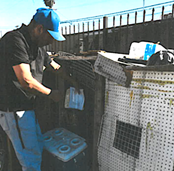 Cages should provide a dog with the necessary security, space, and comfort like the crates from this article. That was not the case for the Pit Bull, Dosky, who was tied inside and could only look out through a small area onto the concrete yard and old cars, and this had prompted complaints to LAAS and was the reason they investigated. The daughter of the owner said he was tied was because he would run out when the door was opened. Reportedly the neighbors were afraid of the dog and that is why he was kept so confined and in a secluded area. The owner said Dosky was two years old and had never been inside their home.