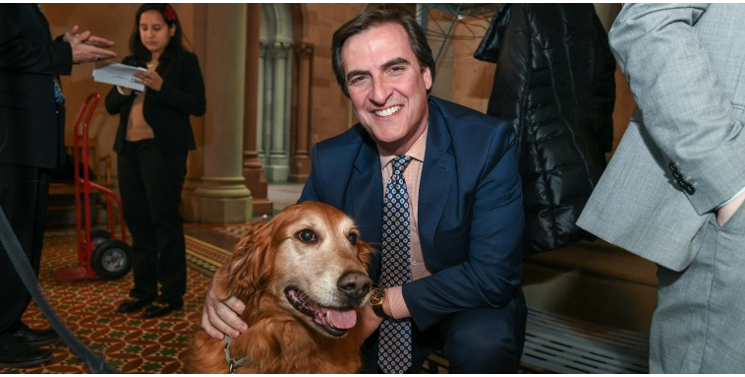 The photo announcing passage of the law ironically shows Deputy Leader Michael Gianaris with a senior Golden Retriever, as he postulates about creating more homes for Pit Bulls and other dangerous-breed dogs. “People should never be forced to choose between an affordable place to live and the pets who are members of their families. This proposal would make it easier for New Yorkers to give good homes to even more animals in need,” he states.