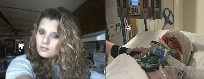 Waltman initially received 109 staples in the front of her head and at least 90 on the back to close her gaping wounds,” according to her sister. Hospital photos were provided on Facebook to verify the reports and agony of the victim and the family.