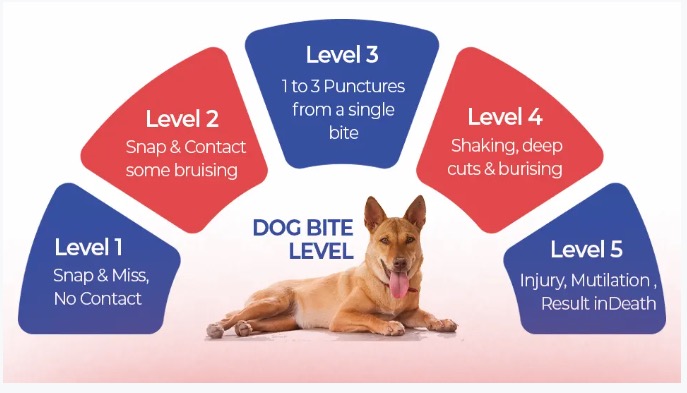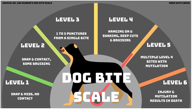 It is worth noting that statistically the vast majority of bites will be Level 1 or Level 2 and severity worse than this is relatively rare.