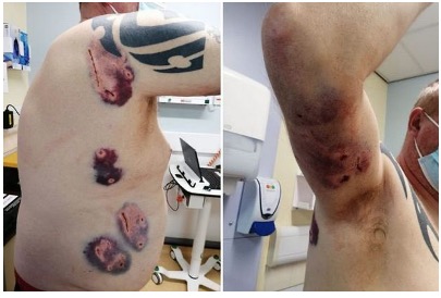 Keith is a window washer and lives in Wallsend in North Tyneside, UK. He suffered horrific bites to his arm, shoulder blade, collarbone and the right side of his body, as shown in photos taken at the hospital, and he is now unable to work while his injuries heal, according to the report.