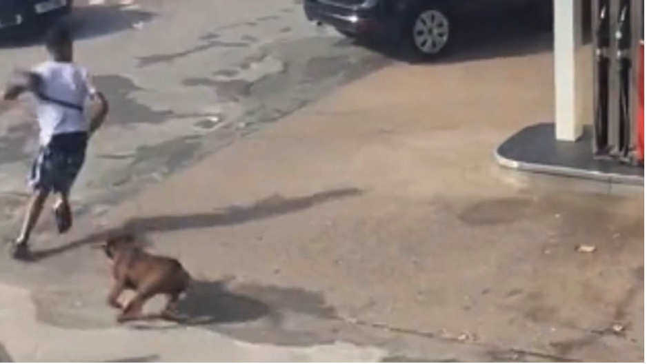 A video of the attack, in which two men were also injured after the dog twice broke free from its collar, appeared on the social media platform TikTok, according to SKY.com
