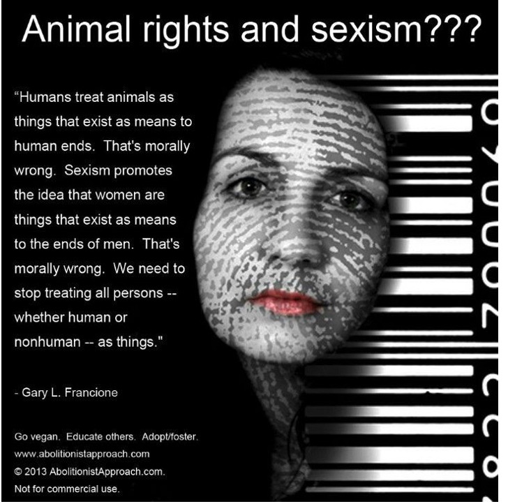 “Humans treat animals as things that exist as means to human ends. That’s morally wrong. Sexism promotes the idea that women are things that exist as means to the ends of men. That’s morally wrong. We need to stop treating all persons—whether human or nonhuman—as things.”