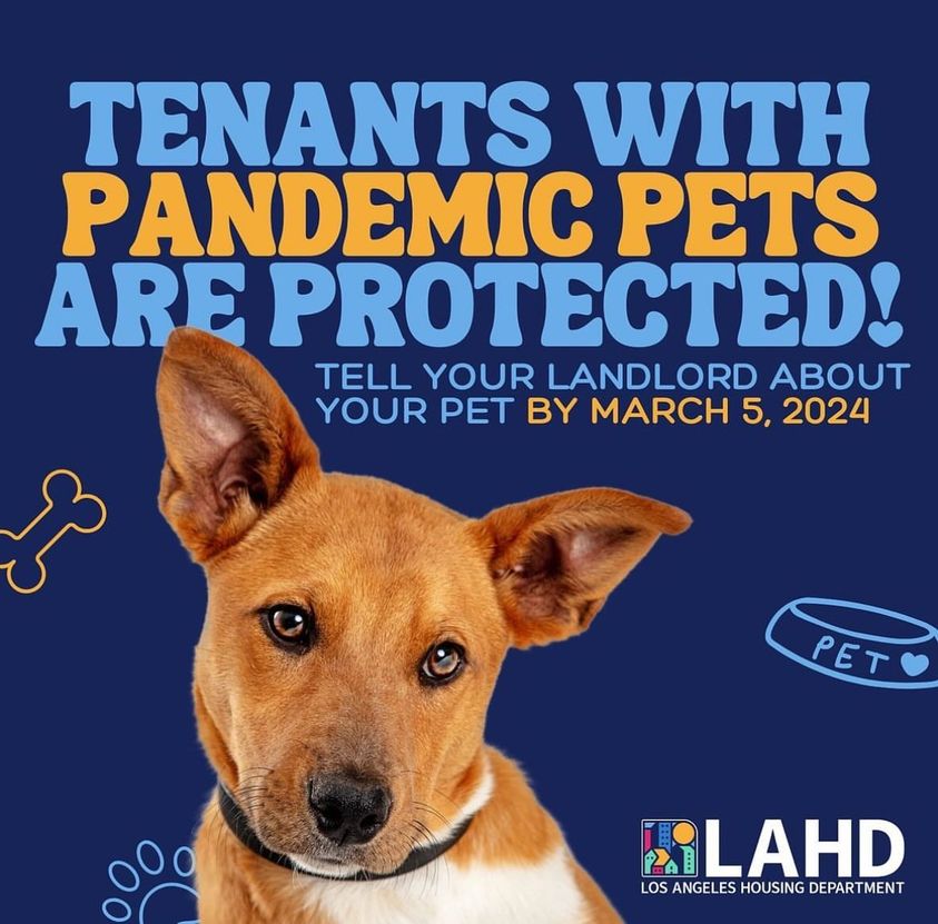 Did you adopt a pandemic pet prior to February 1, 2023 in violation of your lease or Rental Agreement in the City of LA? If so, you can protect yourself from eviction or having to give up your pet. But you have (to) ACT NOW!