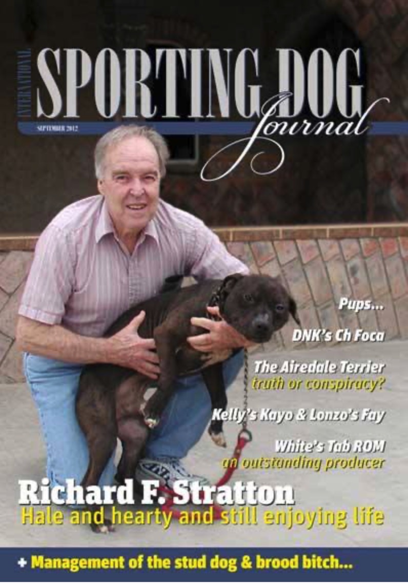 Articles/books by Stratton resulted in his photo with one of his Pit Bulls adorning the cover of an American Pit Bull Terrier Gazette magazine in 1987.