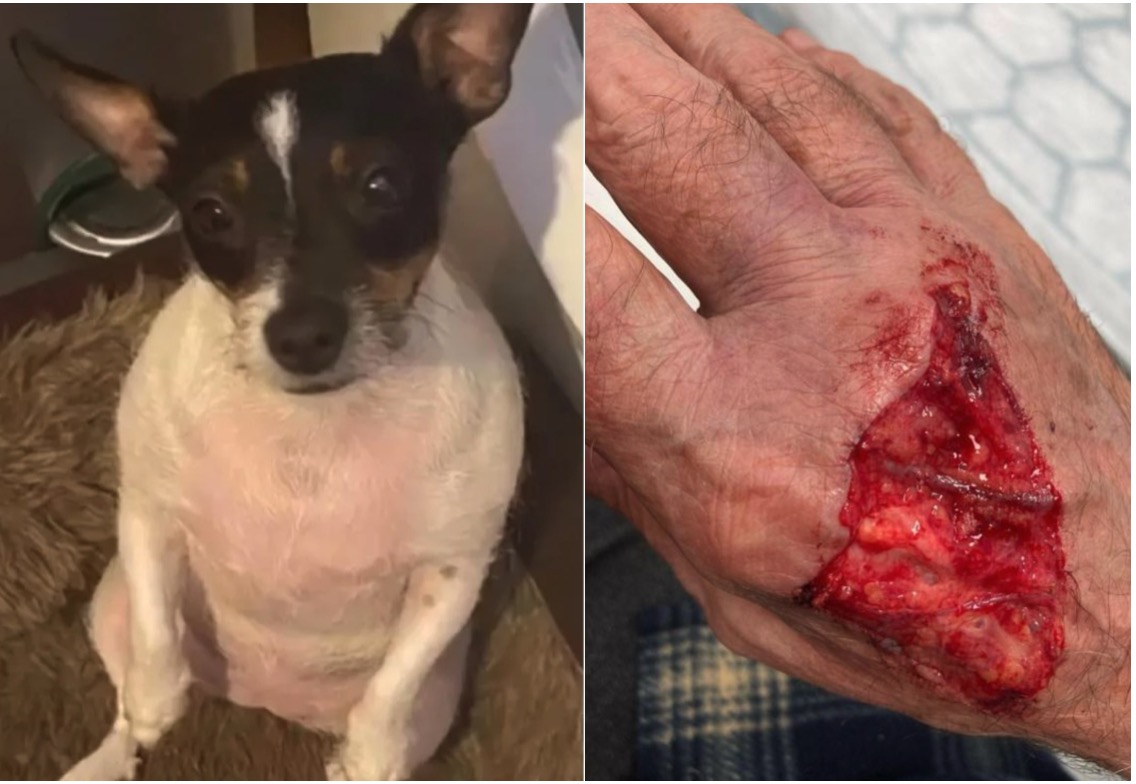 XL Bully Kills Beloved Jack Russell Terrier as Owner Watches, Fights the Dog—then Sadly Carries Pet’s Dead Body Home dog Daisy and his hand injury (Image: Sean)