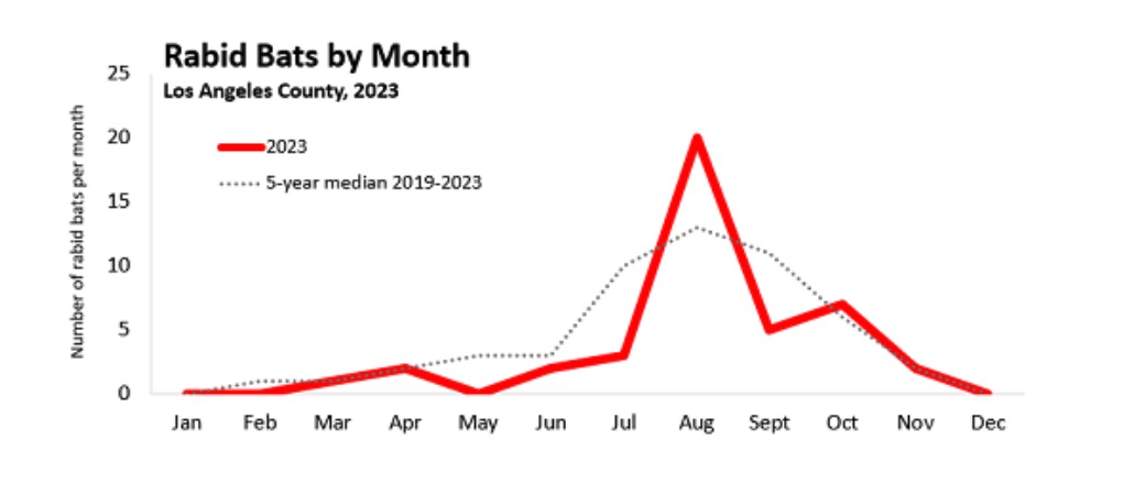 Los Angeles County Health Department reports cases of rabid bats in local areas and annually issues a reminder not to touch any wild animal, especially one that has fallen or indicates illness during the warm months, when rabies is more prevalent.