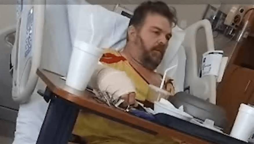 - “His left arm is mangled and broken,” the webpage reads. “They bit his head, shoulders, and legs too. They had to give him several units of blood because his pressure dropped so low it was hard to register.