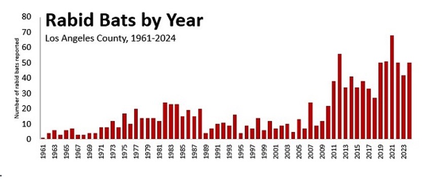 And, LA County Department of Public Health just warned that 61 bats have tested positive for rabies so far in 2025. (The most recorded previously was 68 in 2021.)