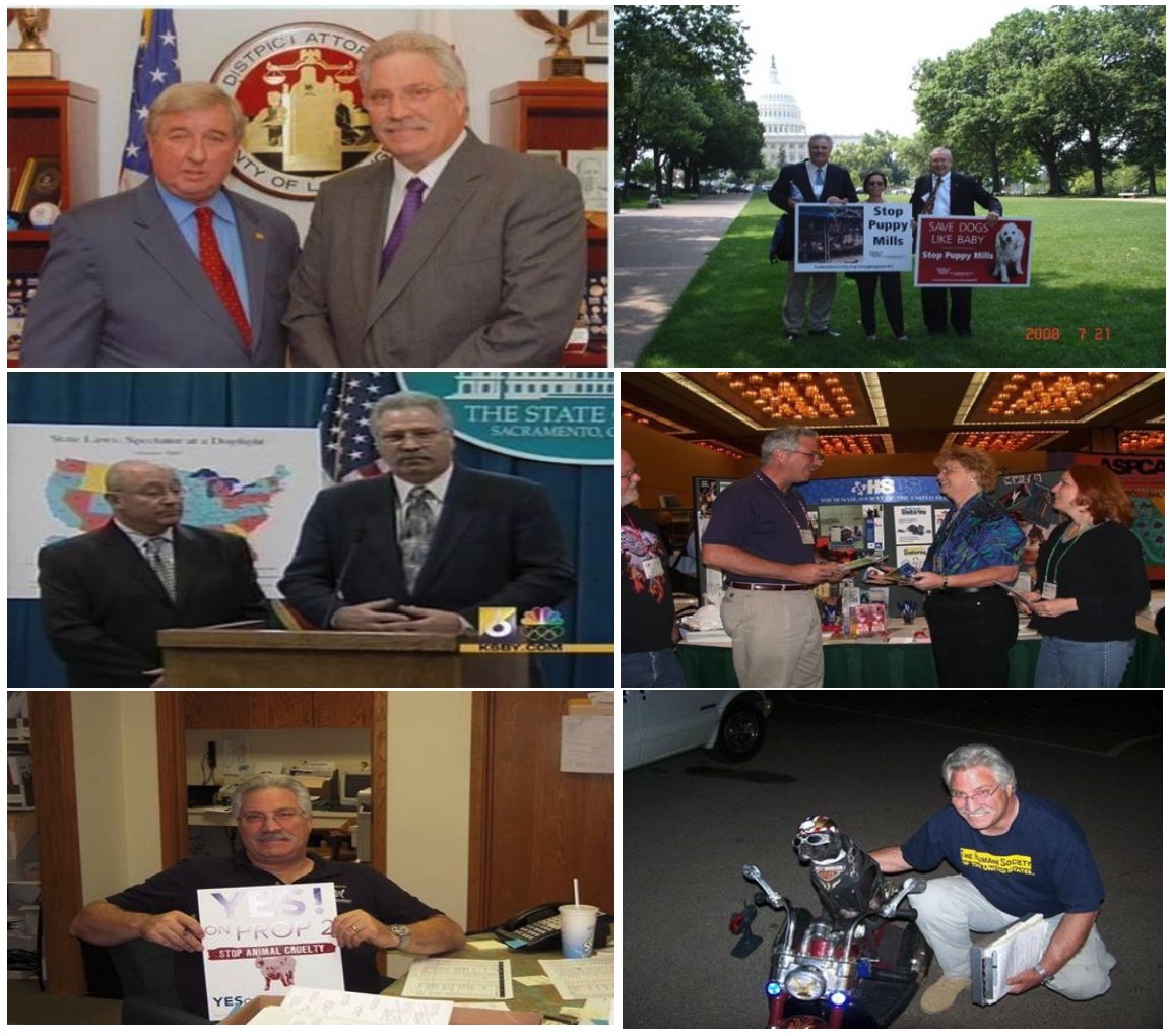 Shown above: Eric Sakach with Marcia Mayeda, Director of L.A. County Animal Control, Steve Cooley (then L.A. District Attorney, Robert Beals, L.A. County Sheriff’s Department; Phyllis Daugherty, President, Animal Issues Movement at Los Angeles