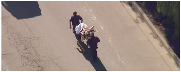 Legally, the news media apparently have the right to show the victims of crime in this way, in all their helplessness, fear, and frailty. That act of carting the crime victim to a waiting ambulance is something that happens in public. At least it's in public over the distance between the location of the shooting and the ambulance waiting out on the street. Public happenings are lawfully available to the news media to photograph and videotape. That's freedom of the press.