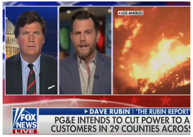 Carlson and his guest Dave Rubin of the conservative Rubin Report were discussing the California wildfires, which investigators believe were sparked when a tree fell on power lines owned by PG&E.