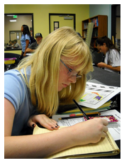 Engrossed in her studies, Stephanie Bottomley who attends Dodson Middle School, said she and her friends will be more comfortable now at the club.