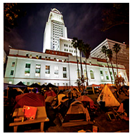 The gathering will eventually be dispersed. Mayor Villaraigosa hinted [link] that the encampment on the on the trampled lawn of City Hall cannot go on indefinitely.