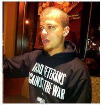 He tried to get out of the military as a conscientious objector after that. He was told it wouldn’t work because he’s an atheist. “So I just smoked a bunch of pot and got kicked out,” he says. He was officially discharged on June 7th of this year. He went back home to Alaska, where he read about Occupy Wall Street on Reddit.