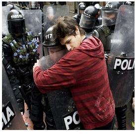 Riot Police in formation jogged up 1st street only to find themselves outnumbered by photographers who jogged alongside in an effort to capture a photo of “the moment of reckoning.”