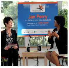 So, I was anxious to hear what she had to say when she appeared at a candidate forum held at CSUN. I listened to it in entirety, courtesy of a video posted at the Studio City Patch web site. [[ http://studiocity.patch.com/articles/live-video-jan-perry-interviewed-at-talking-about-los-angeles ]]