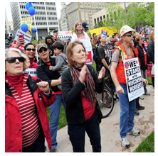 Or they can mobilize their ranks, bring public and private sector workers together, and mount a massive campaign, demanding that the government raise taxes on the rich to such a high degree that there would be plenty of money to fund our schools, restore social services, and establish a federal jobs program that would put everyone to work.