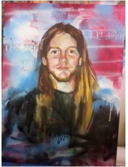 At least for me personally, as a father and a human being, the most touching pieces were the ones which focused on Kelly, the person. An artistically carved bench with Kelley's favored instrument, a guitar. A portrait of a happy, healthy Kelly. Images of Kelly as a child, in the arms of his mother. A piece which featured a graphic depiction of the words "Dad! Dad! Dad!" Kelly's final plea to his father, wafting towards the heavens where, just as they are tattooed on many of our hearts, they will remain forever.