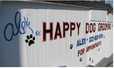 Simple and unassuming, Happy Dog Grooming is a tiny, tidy shop on San Vicente Blvd. near La Brea. There’s a parking lot with ample free parking.