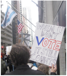 But I don’t get the short- or long-term benefit of dropping out of the political process and dropping your winning lottery ticket of a vote in the gutter. Some people say they find other ways to participate.