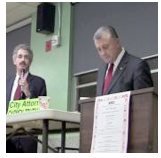 The two are both running for City Attorney; the LA Times reported in October that the race will be "intense" and "rancorous." Greg Smith, a lawyer, is also running, but did not attend the SOHA meeting.