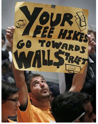 One possible answer is another sadly familiar story: The UC Board of Regents has become what the report describes as a “revolving door with Wall Street.” An increasing number of posts in top UC management and on the Board of Regents have been filled by former Wall Street bankers, the report explains, including a new CFO position created in 2009 and filled by Peter Taylor, who was the Managing Director of Public Finance for Lehman Brothers before he found himself out of a job following the firm’s spectacular collapse.