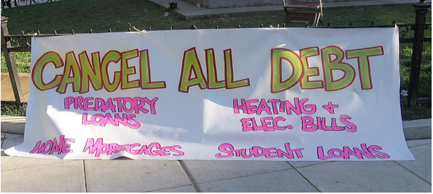 What Would It Mean to Erase All Debt?-We are living in a time when too many of our financial resources are allocated to non-productive activities — principally the accumulation of wealth by “making money with money” and a myopic focus on economic activities that service our massive debts. This is why people work at jobs they hate. It is why investments are not being made in renewable energy, public education, the arts, health care, or the eradication of poverty. We have built a massive financial house of cards on debt — with money itself coming into being when loans are taken out, a pool that grows exponentially due to the interest that accompanies it — and so we are not able to bring consumer culture to an end or focus our creative talents on planetary sustainability.