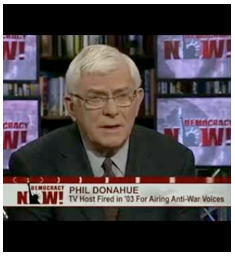 Donahue and Bill Moyers, the last honest men on national television, were the only two major TV news personalities who presented the viewpoints of those of us who challenged the rush to war in Iraq. General Electric and Microsoft—MSNBC’s founders and defense contractors that went on to make tremendous profits from the war—were not about to tolerate a dissenting voice.
