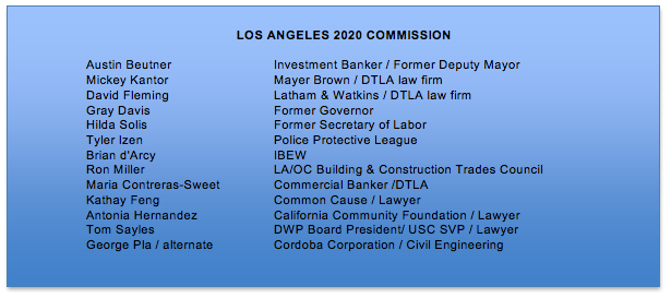 LA WATCHDOG - It did not take long for the credibility of the “Los Angeles 2020 Commission” to be seriously questioned as the 12 members (and one alternate) are all part of or dependent upon the City Hall establishment that is responsible for the City’s impending insolvency.