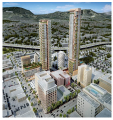 The Alien Implants will also alter Hollywood’s skyline, creating vertical blight as the 585 foot and 495 foot skyscrapers will dwarf not only the iconic Capitol Records building, but every other structure in Hollywood, including the new but struggling W Hotel complex at Hollywood and Vine.