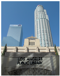 I knew the paper already had an architecture critic--which was probably what he was really trying to tell me--either that or he was doing his best Leon Whiteson impersonation by wringing his hands dry--and no, I didn't want to write much on architecture anyway. But I did pay much attention in subsequent years to the way downtown development in LA eked out a credible skyline in the 1980s, clustering in particular around the Library Tower.