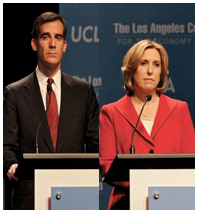 Thompson doesn't see much difference between Greuel and Garcetti, two friendly, intelligent, nonthreatening City Hall functionaries who are both white, pro-union, liberal Democrats. Both have campaigned with a sort of election-season amnesia, ignoring their own records as two of the nation's highest-compensated politicians, instead explaining what they may — or, just as likely, may not — do once elected: balance the budget, pave the streets, fix the sidewalks, achieve a consensus between business and labor, and so on.