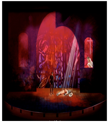 Photo and sketches above are used by permission of LA Opera. The top and bottom are preliminary sketches for this production by designer Yael Pardess. The middle photo of Lee Holdridge is uncredited.