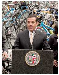 The mayor is also credited with presiding over a paradigm shift at the city’s Department of Transportation, which has taken new interest in non-motorized transportation. He oversaw the hiring of two LADOT pedestrian coordinators, spearheaded the adoption of “continental crosswalks” that are much more visible than conventional striped crosswalks, and launched a Safe Routes to School master plan.