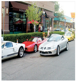 No one caught a glimpse of him, of course. What she did see were scores of expensive cars moving down San Vicente – black, big SUVs, as usual, and top-of-the-line Mercedes and BMWs but also Jaguars, Ferraris, a Rolls, even a Lamborghini, plus others she couldn’t name. These cars begin at $75,000 and go to the mid-six figures.