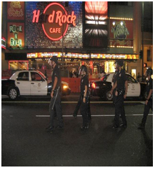 But on Tuesday night, marauding mobs of youths took the Red Line up to Hollywood and Highland, and tore up a few blocks of Tinseltown's tourist-trap acreage. KCBS reported 20-40 youths on a "crime spree"; other media outlets reported fewer; the Times would say that they were all social media hooligans, and all but one arrested were under 18. But to most on the scene, it seemed like there were a lot more and they were using phones and text rather than social media to disappear and reappear. Tourist shops were ransacked; youths kicked and ran over people.