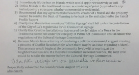But a motion regarding the mural ordinance had been drafted by LANCC’s Secretary Alisa Smith: