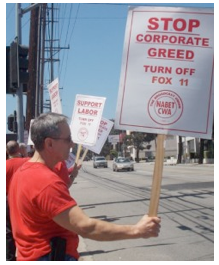 This summer, Fox declared an impasse in contract negotiations with CWA/NABET Local 53, which represents the engineers, editors and photographers at the company’s two TV stations in Los Angeles, KTTV and KCOP. Declaring an impasse, after two years of sporadic negotiations by the company, gave Fox an excuse to impose a contract that slashed the wages and benefits of its union workers.