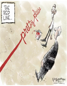 There’s that red-line thing, I suppose, but somehow “You cross that line and I’m going to tell Congress” lacks something as a threat. Not that I’m against consulting Congress, if its members can be located.