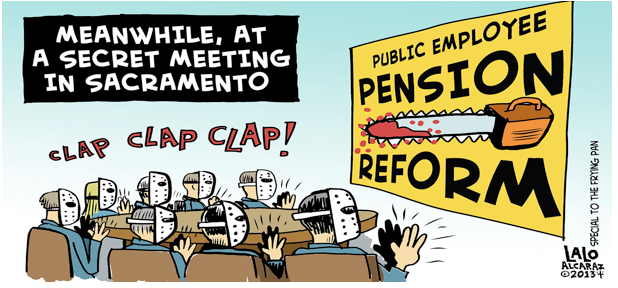 “Pension reform” has become the latest battle cry in a seemingly endless war that has ostensibly been declared against tax-dollar waste, but whose single-minded purpose has been to slash the job protections and benefits enjoyed by California’s working middle class. Pension-cutting advocates have filled airwaves, websites and op-ed pages with stories about employees retiring in early middle age on six-figure pensions. The reality is that the average state and municipal worker retires on about $26,000 a year.