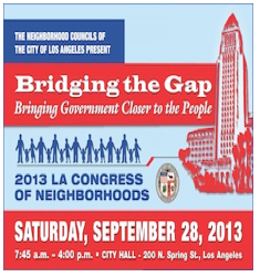 CONGRESS OF NEIGHBORHOODS-Neighborhood Council Board members and Committee chairs … and stakeholders … from throughout the City will gather at City Hall on Saturday for the annual LA Congress of Neighborhoods. Organized by Cindy Cleghorn, Volunteer Chairwoman of the Congress Planning Committee and Thomas Soong from EmpowerLA, the Congress has been months in the making.