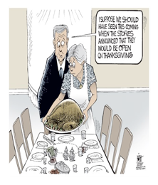 Capitalism is great, but some things are greater. Family is greater. Yes, these folks choose to work at these stores. Yes, they likely knew when they signed up that they'd be sacrificing their Thanksgivings. Yes, at least they have jobs. Yes, sure, and so what? If that's enough in your mind to justify participating in the destruction of a great American tradition -- good for you.