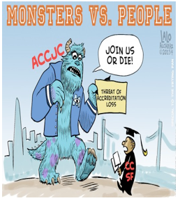 Then, addressing the ACCJC’s sanctions, she adds, “It’s unfathomable that they would go this far and try and take away this invaluable resource.”