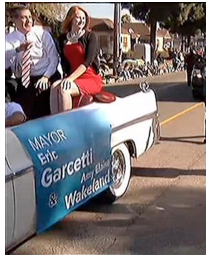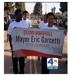 "Partway through the parade Mayor Garcetti ditched the car and walked the parade route on foot."
