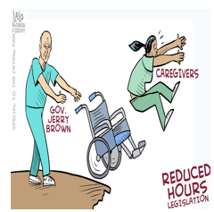 Her good fortune didn’t last long. On January 9, Governor Jerry Brown unveiled his proposed $155-billion budget for 2014-2015 at a press conference in Sacramento. Under the governor’s budget, Vidales and hundreds of thousands of other home health care workers would be prohibited from working more than eight hours a day, or 40 hours a week. Now, suddenly, the state’s home health care workers are not only facing the possibility of not receiving overtime, but of also losing the extra hours they’ve been accustomed to working.