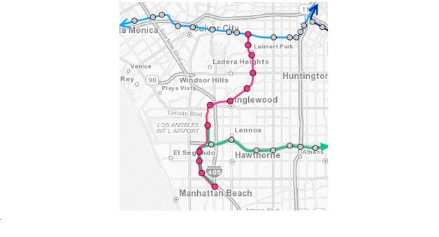 The Harbor Subdivision ROW was to be used between the South Bay portion of the Metro Green Line as part of the Crenshaw/LAX Light Rail Line up to its future Inglewood Station, before the Crenshaw/LAX Line leaves the Harbor Subdivision ROW to proceed north up Crenshaw Blvd. to the Exposition (Expo) Light Rail Line at Crenshaw/Exposition: